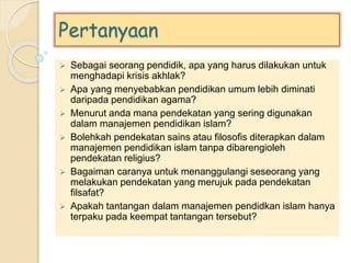 Pendekatan Dan Tantangan Dalam Manajemen Pendidikan Islam